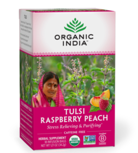 Organic India – Organic Herbal Tea & Infusions, Tulsi with Raspberry & Peach Blend (18 teabags)