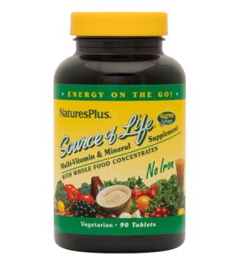 Nature’s Plus (Source of Life) – Multinutrient, Multivitamin & Mineral No-Iron (90 tablets)