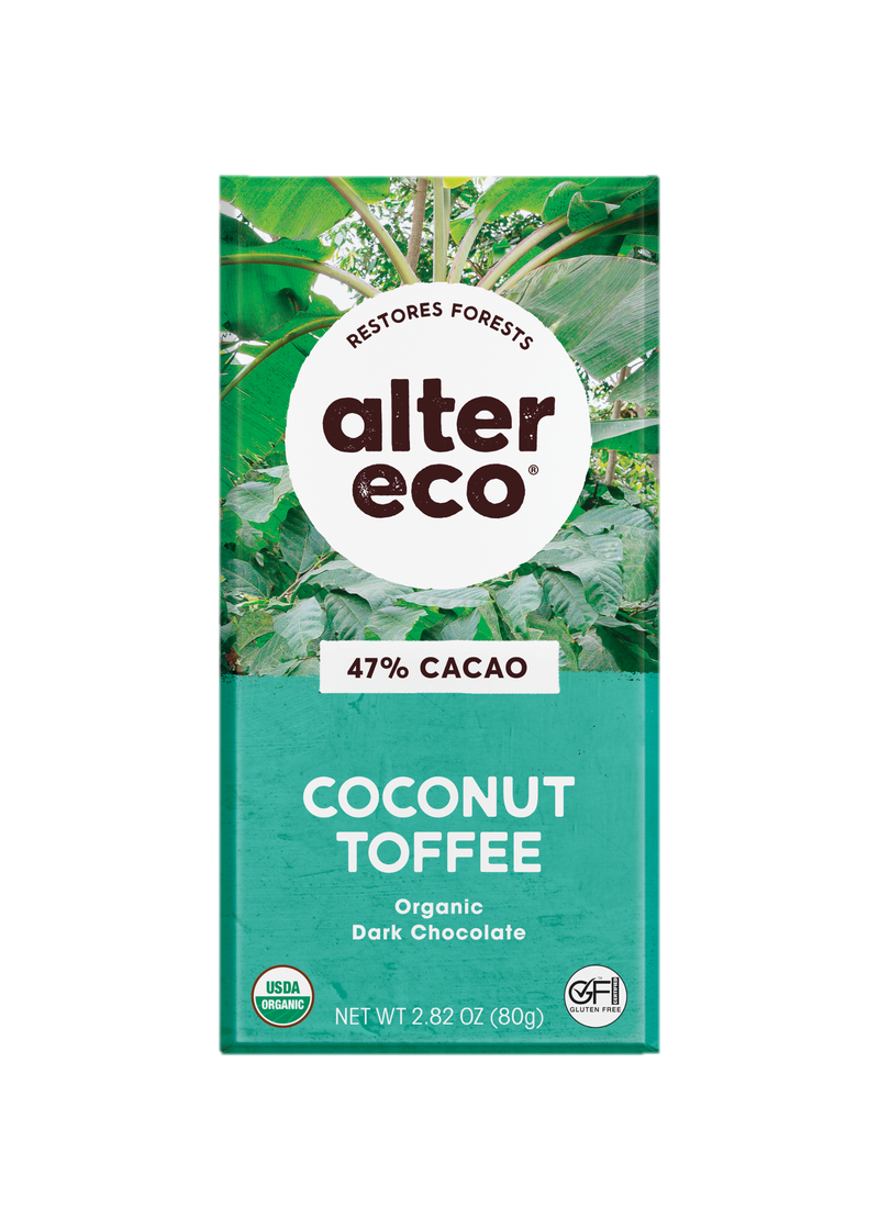 Alter Eco – Organic Dark Chocolate, Coconut Toffee with 47% Cacao (2.82oz)