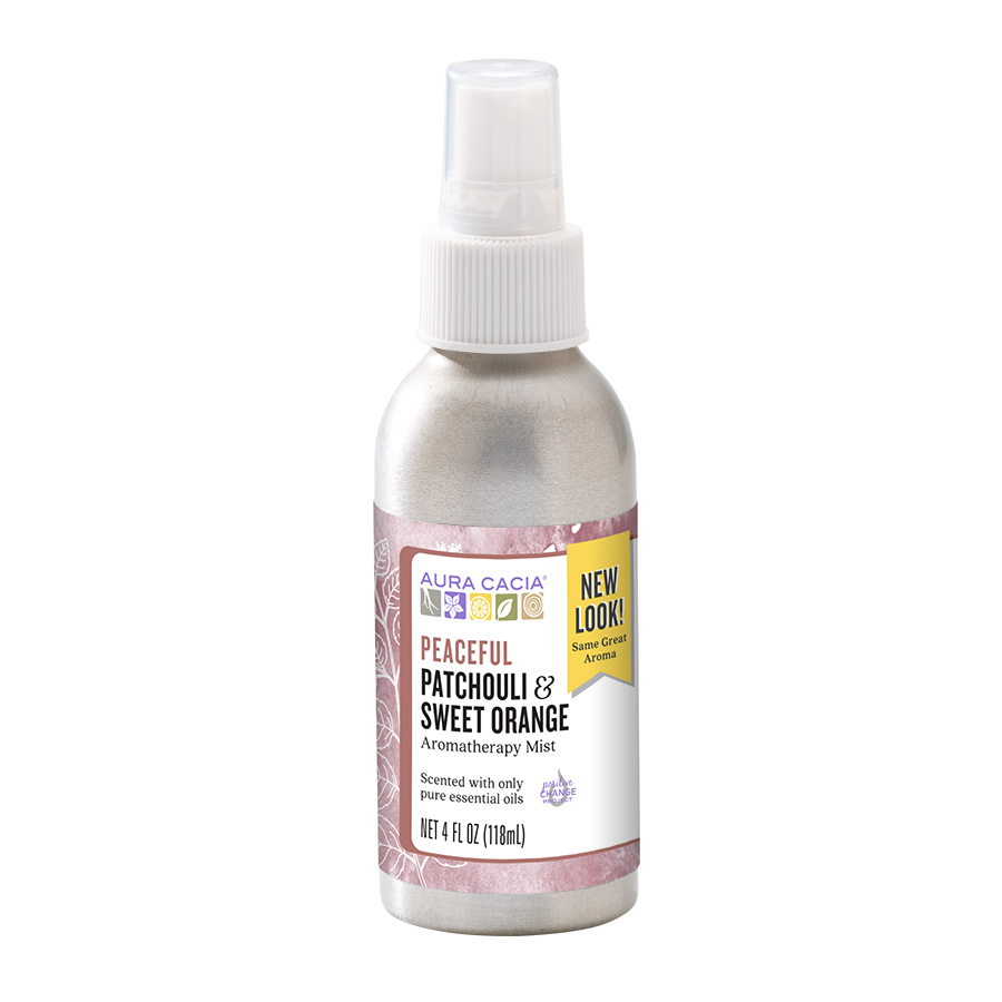 Aura Cacia Peaceful Patchouli & Sweet Orange Mist transports you back in time with the free-spirited combination of patchouli & sweet orange essential oils.
