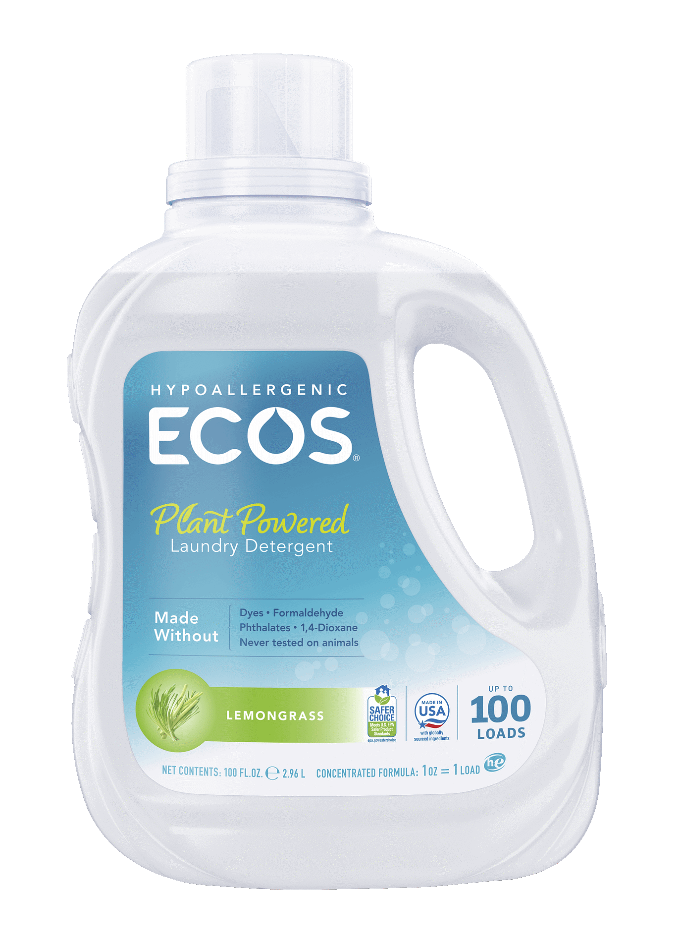 Earth Friendly (ECOS) – Laundry Liquid, Hypoallergenic Detergent Lemongrass (50oz)