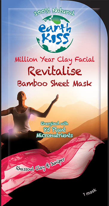 Earth Kiss Million Year Clay Facial Revitalise Bamboo Sheet Mask is a wonderful, natural mud mask that is infused with the wonder of Rhassoul Clay from Morocco & Juniper, to purify & revitalise your skin in minutes. The Facial Revitalise Bamboo Sheet Mask will help rebalance the skin while also increasing energy & relieving stress & anxiety.