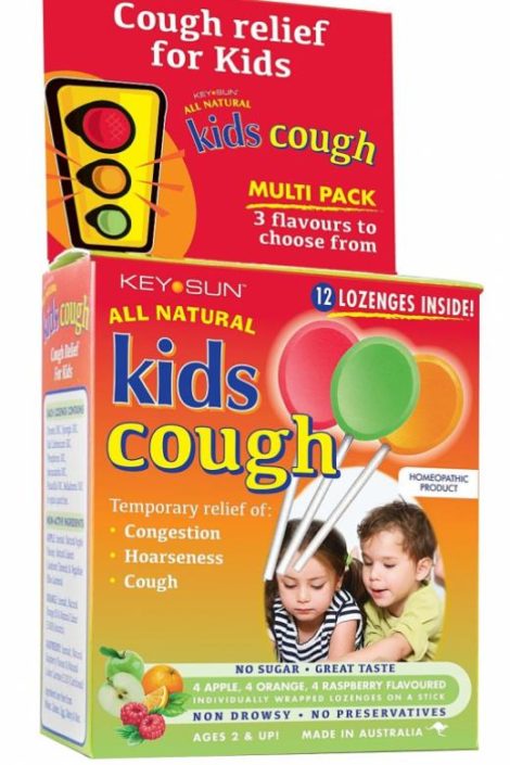 4 Apple, 4 orange and 4 raspberry flavoured lozenges. Individually wrapped on a stick.