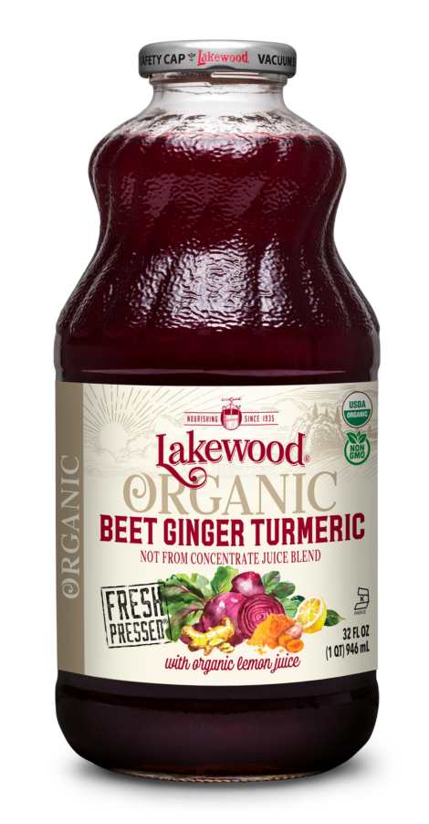 - 100% Certified Organic Beet Juice with Organic Ginger & Turmeric.