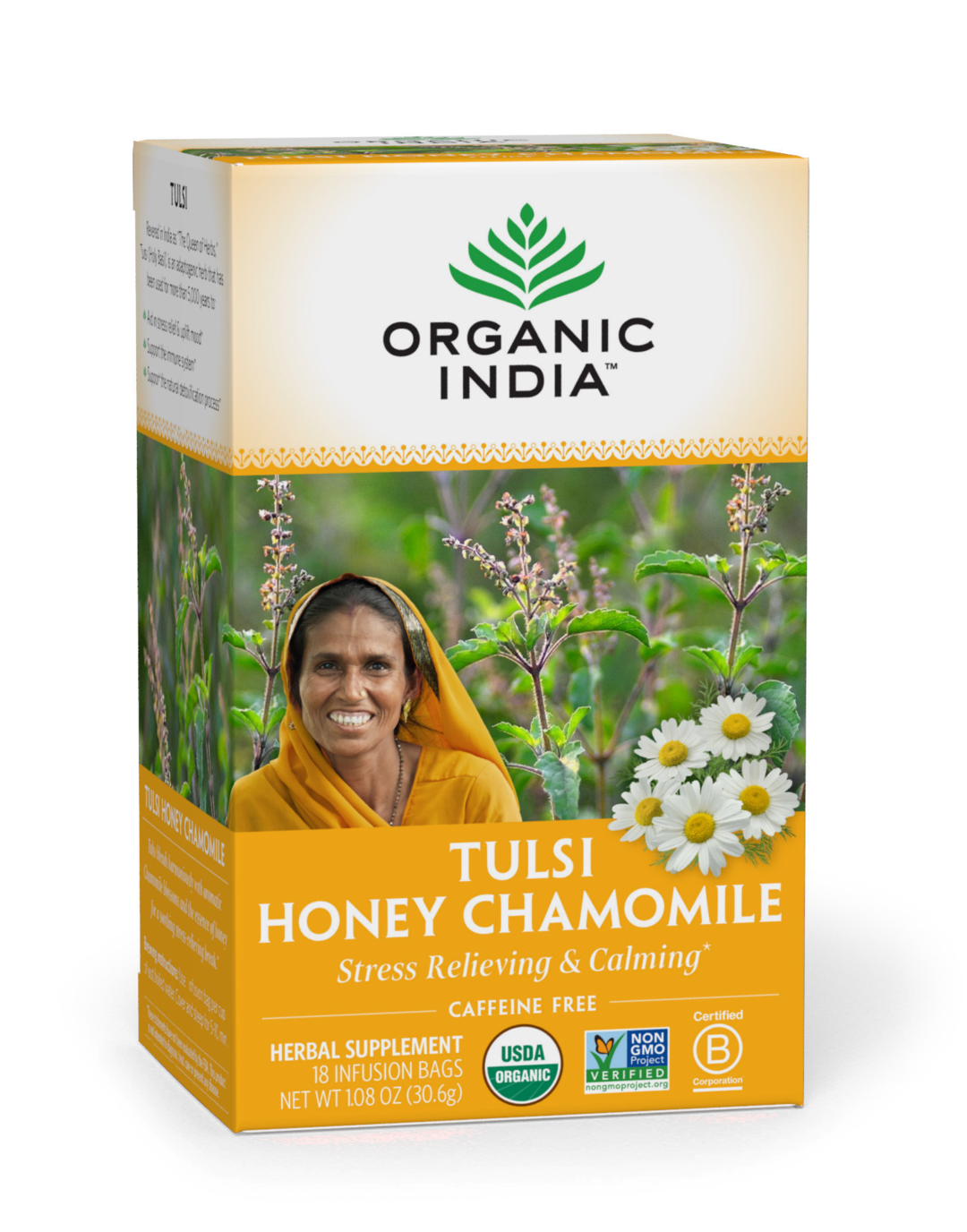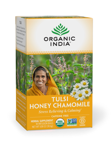 ORGANIC INDIA‘s foundational herb, adaptogenic Tulsi, meets aromatic Chamomile. Soothing & warming.