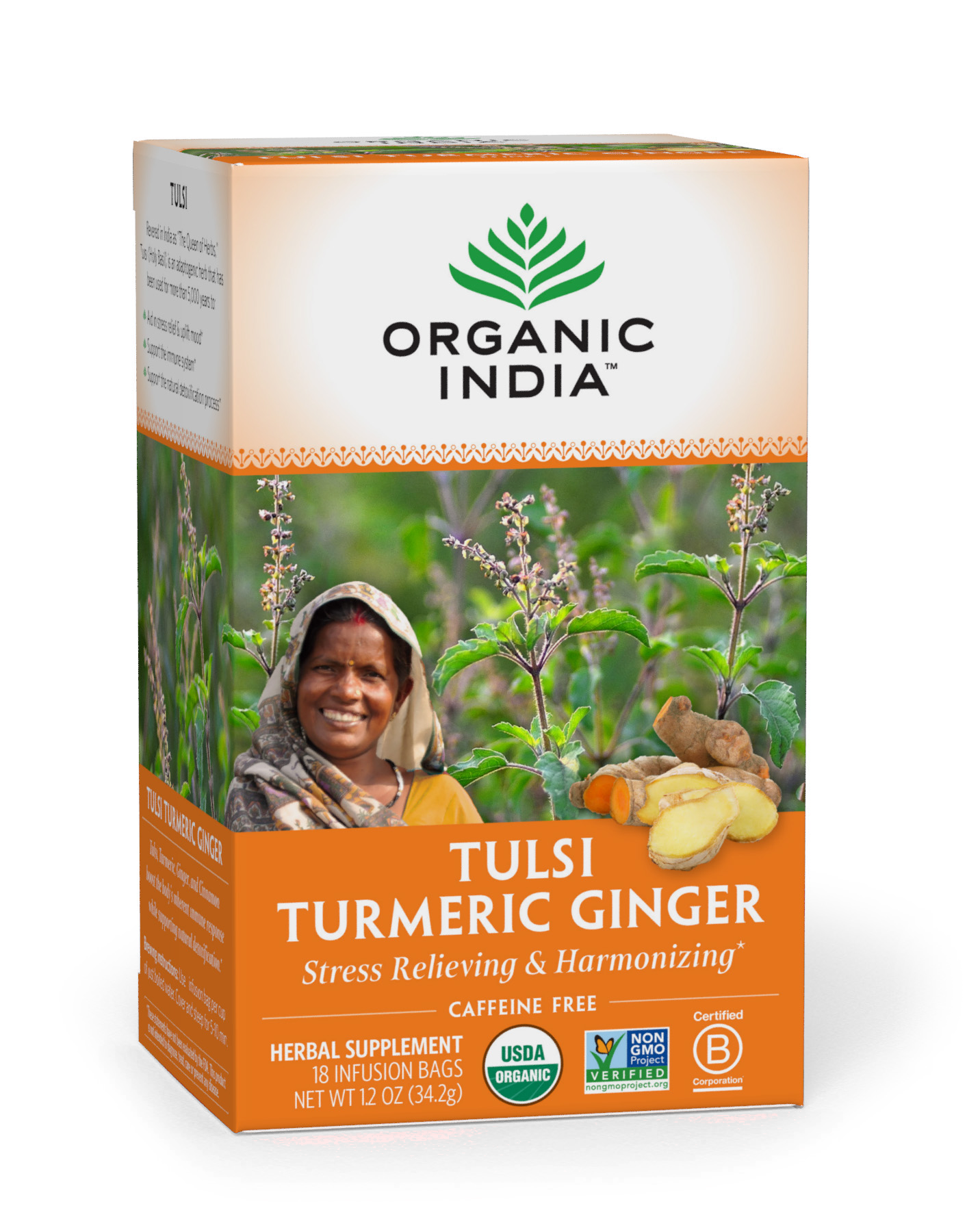 Organic India – Organic Herbal Tea & Infusions, Tulsi with Turmeric & Ginger Blend (18 teabags)