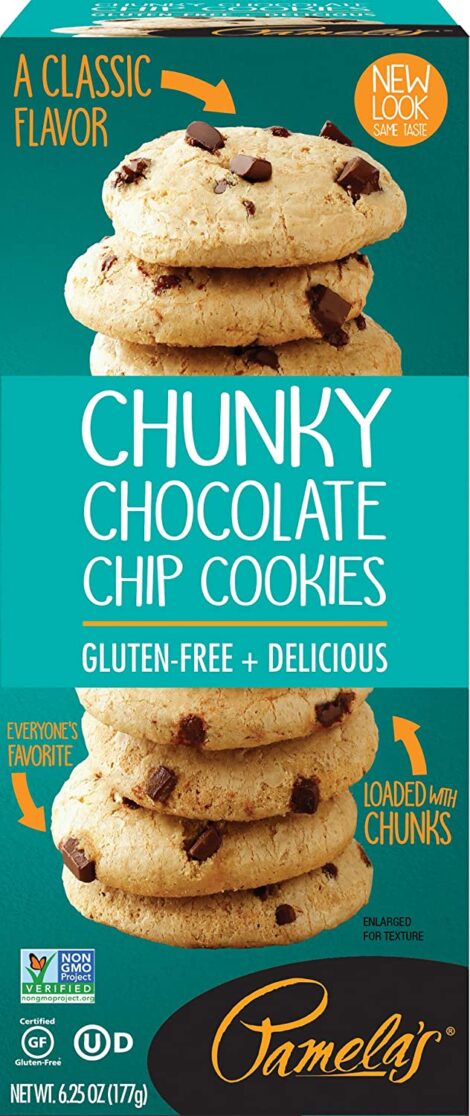 Still the favorite since 1988, Pamela’s gluten-free Chunky Chocolate Chip cookies satisfy with large chocolate chunks & a traditional chocolate chip cookie taste. It’s hard to eat just one!