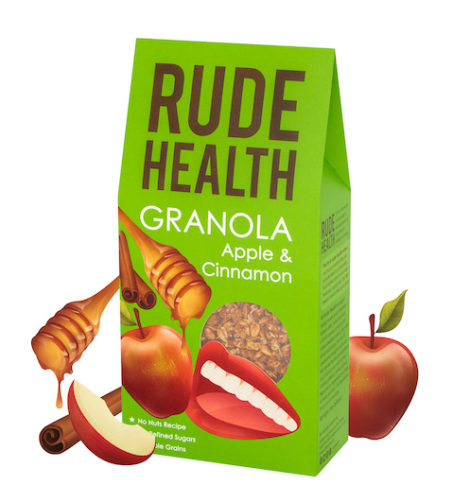 Apple & Cinnamon Granola. Muesli’s sophisticated sister. If Muesli is all wholesome country oats, then Granola is like Muesli that moved to the city & got all fancy. Granola got mixed up with real apple pieces, cinnamon & a menage of spelt & six exotic grains, & drizzled with honey. The whole thing is baked with oh-so-chic unrefined cane juice sugar. It’s satisfying, indulgent & up for it morning, noon & night.