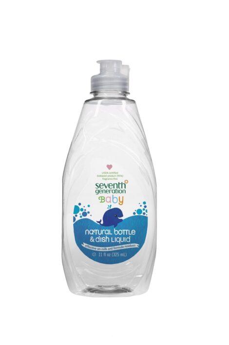 Seventh Generation Baby Natural Bottle & Dish Liquid is formulated specially to target & remove milk, & formula film from baby bottles & nipples, not to mention stains & dried on leftovers from baby foods such as pureed fruits & vegetables, & baby cereals. The hypoallergenic, clean-rinsing formula gives you an easy way to keep baby’s food dishes, utensils & bottles truly clean, & fresh.