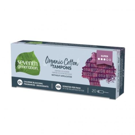Seventh Generation – Period Care, Super Absorbency Cotton Tampons, without Applicator (20 counts)