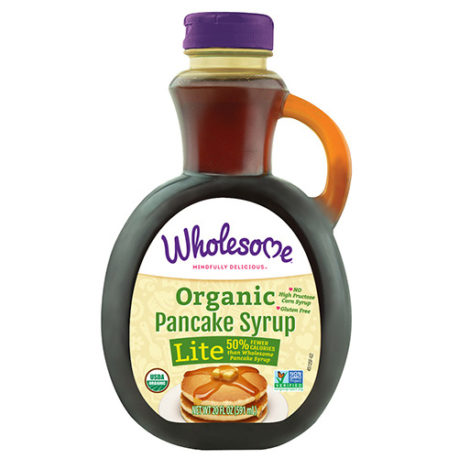 Wholesome is the first to make a delicious Organic Lite Pancake Syrup using organic sugar rather than high fructose corn syrup. Preservatives & other ingredients that are hard to pronounce are eliminated – to create a rich, decadent syrup your whole family will enjoy. Kids love the great taste & moms love the clean ingredient statement.